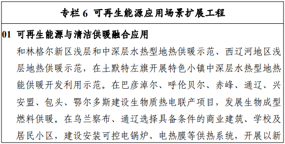 3月3日,內(nèi)蒙古自治區(qū)能源局發(fā)布關(guān)于印發(fā)《內(nèi)蒙古自治區(qū)“十四五”可再生能源發(fā)展規(guī)劃》的通知,其中“十四五”時(shí)期可再生能源供熱目標(biāo)要求,自治區(qū)地?zé)崮、生物質(zhì)能、太陽(yáng)能供暖和新能源電力供暖利用規(guī)模顯著提升。全區(qū)可再生能源供暖面積達(dá)到3600萬(wàn)平方米,“十四五”期間新增2500萬(wàn)平方米。